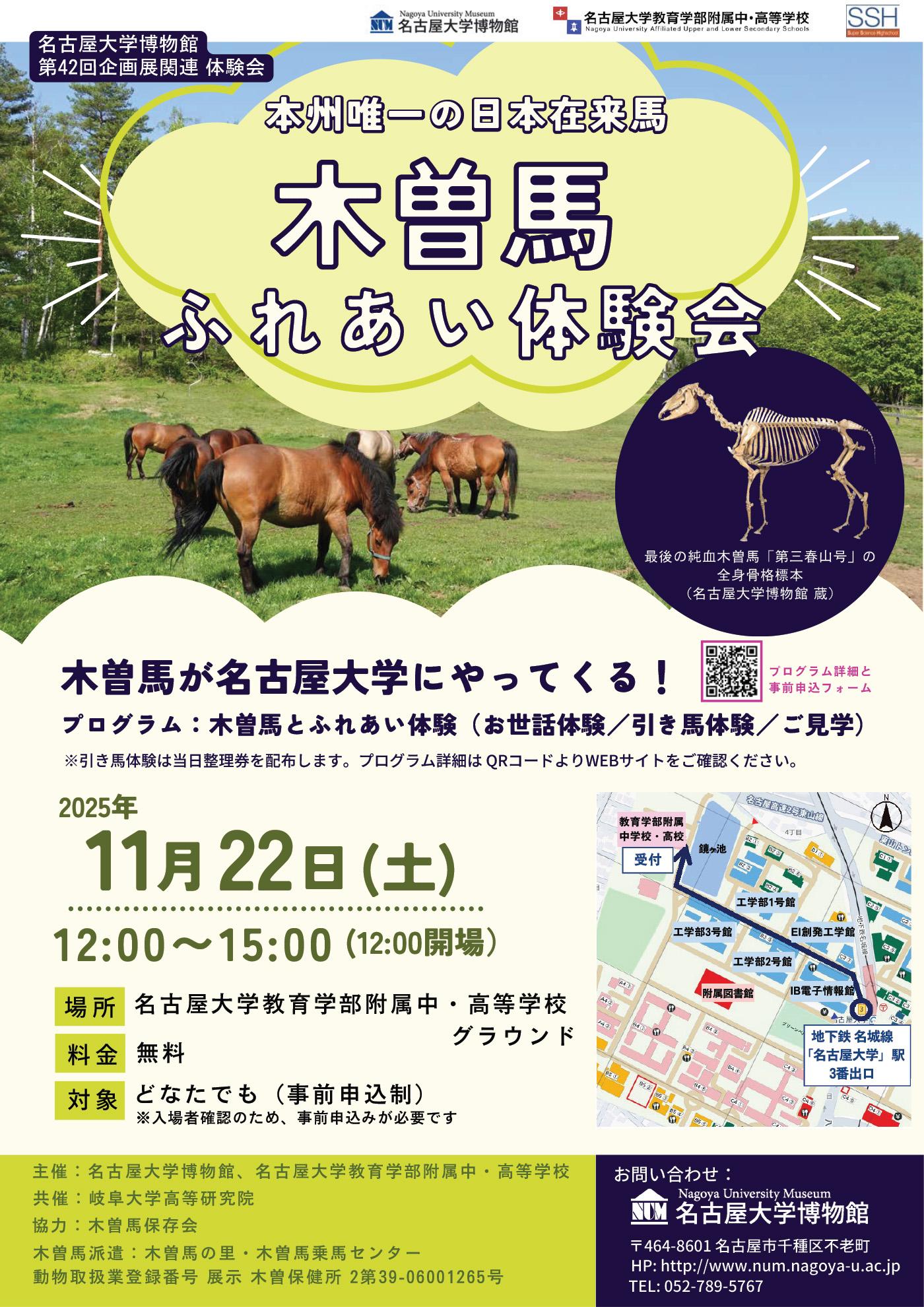 「名古屋大学に木曽馬がやって来る!木曽馬ふれあい体験会」