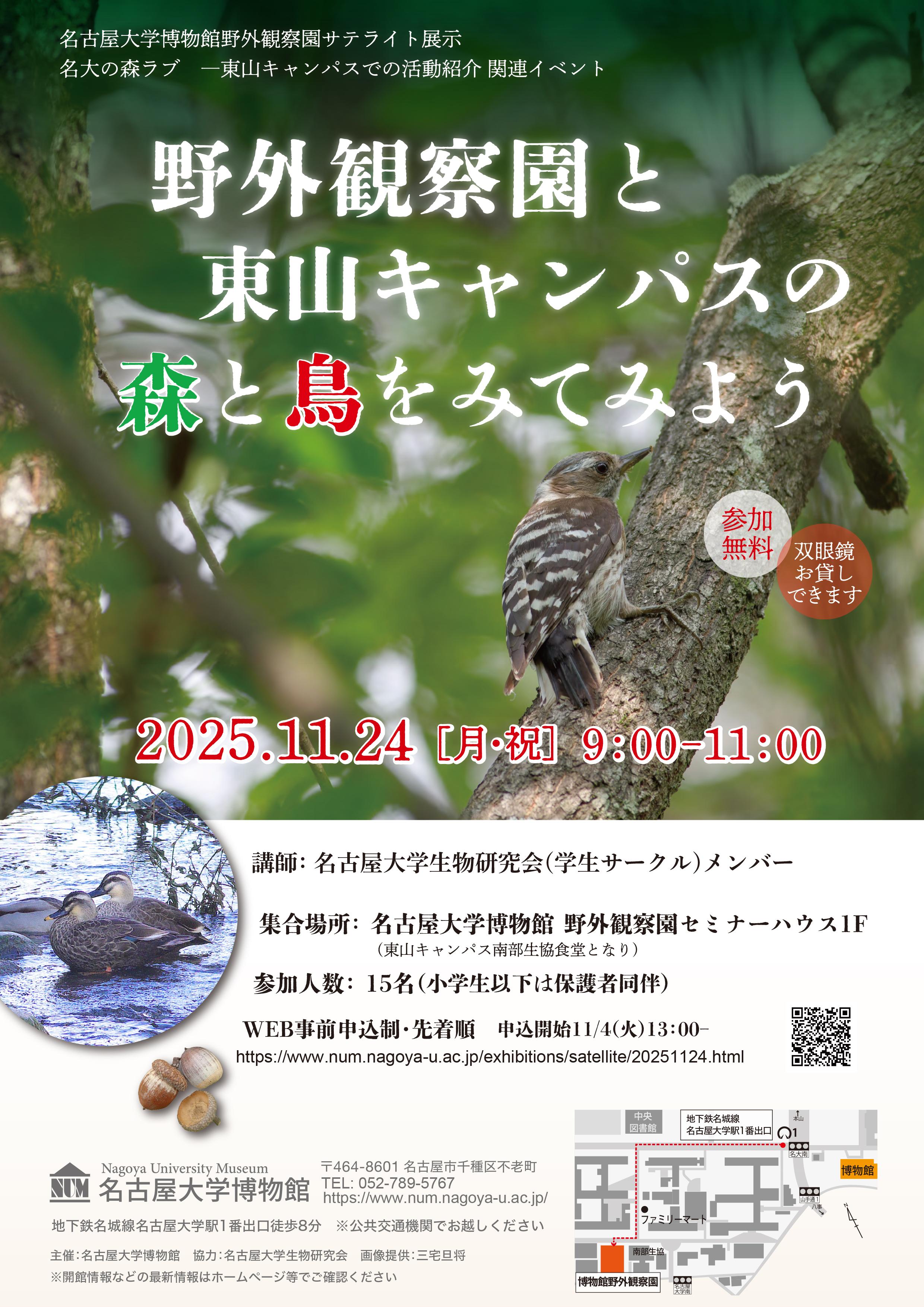 - 野外観察園セミナーハウス サテライト展示 鳴き声と写真で知る名大の野鳥