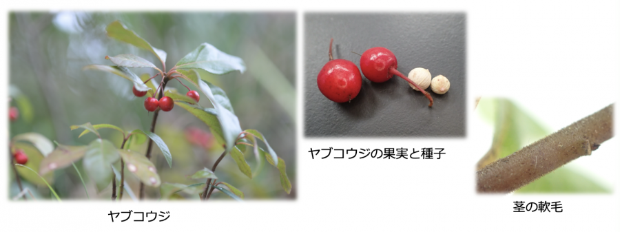花は7~8月ごろ、葉または鱗片状の葉の脇から2~5花ずつつけます。花柄は7~10㎜、花は直径6~8㎜、白色やピンク色を帯び下向きに咲きます。果実は秋には赤くなり直径5㎜ほど。中には一つの種子があります。別名で「十両」といい、真冬でも緑色の葉と赤色の果実を長く保ち、お正月の縁起物としても用いられています。江戸時代には流行したくさんの品種が作られました。根茎は薬用に利用されます。